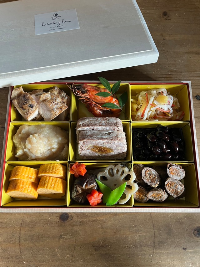 【店頭お受取】はるひのおせちと桐のまな板セット 税込26800円 ★★こちらは店頭お受取のご予約です。配送ご希望の方はお間違えのないよう、お願い致します★★ はるひの無添加おせち ご予約受付開始しました。 毎年完売になる人気のおせちですので ご予約はお早めにどうぞ! 桐箱1段(写真は2025のイメージです) +桐のまな板付き(国産桐のまな板正方形Sサイズ W20×D20×H1.8cm 高安桐工芸さんとのコラボ商品となります。 新しいまな板で新年をお迎えしましょう。 ○伊達巻き ○数の子入り紅白なます ◯厚木野菜のお煮しめ ○清川村恵水ポークのテリーヌ ○鶏もも肉の麹味噌漬け ○北海道白豆きんとん ○丹波黒豆黒糖煮 ○久米島産車海老の旨煮 ○馬の煮込み (内容は仕入により変わることがあります。 写真はイメージです。) たっぷり2人分くらいの量です。 環境の為に桐重箱を使用します。衛生面から、お重のお持ち込みはご遠慮いただいております。 化学調味料は使っておりません。 砂糖は奄美大島産きび砂糖、沖縄県浜比嘉島の塩。 食材は基本的に国産のもの、 厚木産のものを使っています。 仕入れで手に入らないものは外国産となる場合がありますが、全て表記致します。 完全予約制のため、キャンセルは出来かねますのでご了承くださいませ。 【はるひごはん店頭 お受け取り時間】 2025/12/31 11:00-17:00 厚木市幸町1-14 店頭前に駐車場あり 046-258-6873