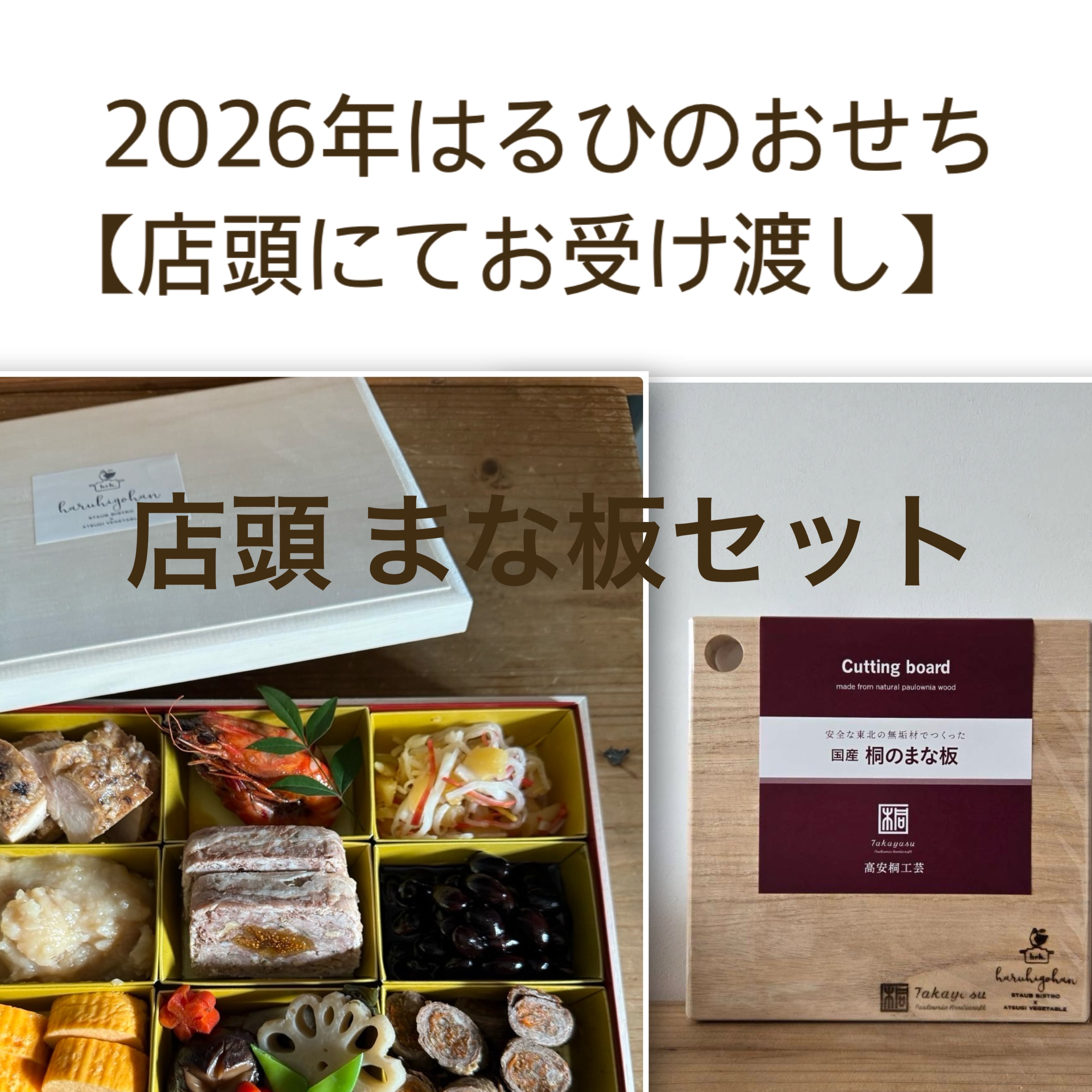 【店頭お受取】2026年はるひのおせちと桐まな板セット